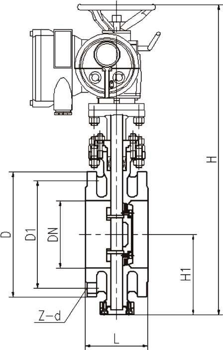 DN | 法蘭式 | 對夾式 | H | H | D | D1 | Z-d | (kg) |