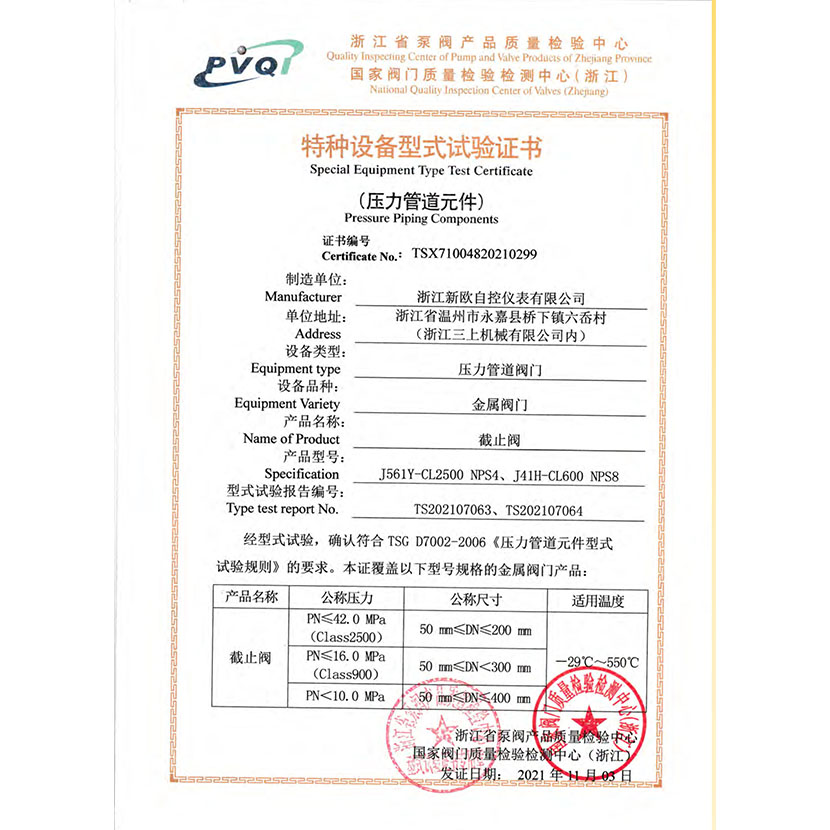 截止閥 型式試驗(yàn)報(bào)告